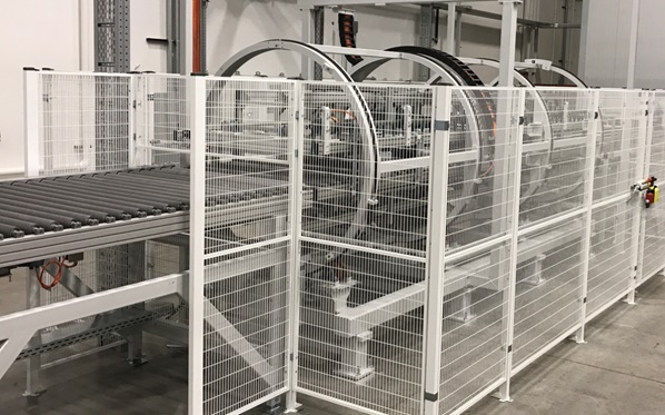 Alternativ kann eine Rampe mitgeliefert werden. Der Zuführbereich wird durch Lichtschranken gesichert. Seitlich ist mittels Maschinenschutzzaun gesichert.